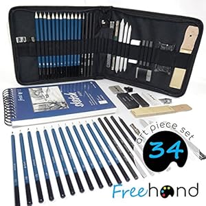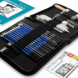 NIL – TECH Art Supplies Graphite Drawing Pencils and Sketch Set (37 Piece Kit) – Complete artist kit Includes Charcoals…