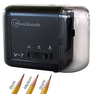 OfficeGoods Electric Pencil Sharpener – Battery or Cord Powered Portable Sharpener – Perfectly Sharpens Colored Pencils…