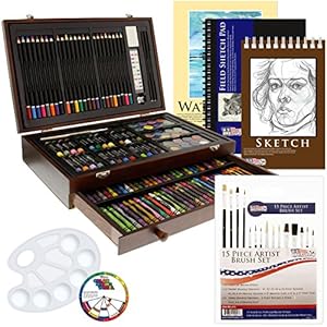 U.S. Art Supply 162-Piece Deluxe Mega Wood Box Art Painting and Drawing Set – Artist Painting Pad, 2 Sketch Pads, 24…