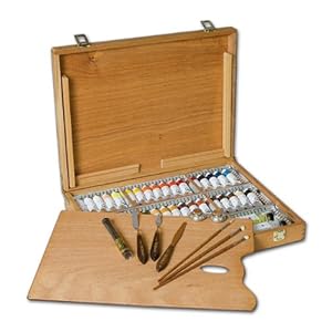 Old Holland Master’s Oil Paint Set with Wood Storage Box & Palette, Cups, Knives, Paint Brushes, Mediums- 34 x 40ml…