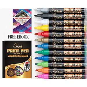 Paint Pens for Rock Painting – Ceramic, Wood, Metal and Glass. Set of 12 Vibrant Extra Fine Tip Paint Markers, Fast…