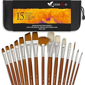 Paint Brushes Set – Acrylic Oil Watercolor Gouache Painting Brushes – Badger hog Bristle Synthetic Brushes – Artist…