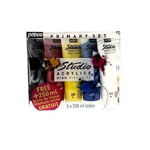 Pebeo Studio Acrylics High Viscosity, Primary Pack, 5 x 250 ml Tubes