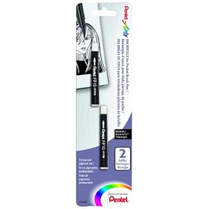 Pentel Arts Pocket Brush Refills, Black Ink, Pack of 6 (FP10BP6A)