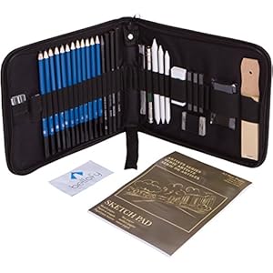 29 Pieces Professional Sketching & Drawing Art Tool Kit With Graphite Pencils, Charcoal Pencils, Paper Erasable Pen…