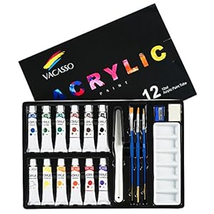 Acrylic Paint Set by VACASSO, 12 Vibrant Colors Kit with 3pcs Brushes, Palette and more Accessories, Professional…$9.99 Buy product
