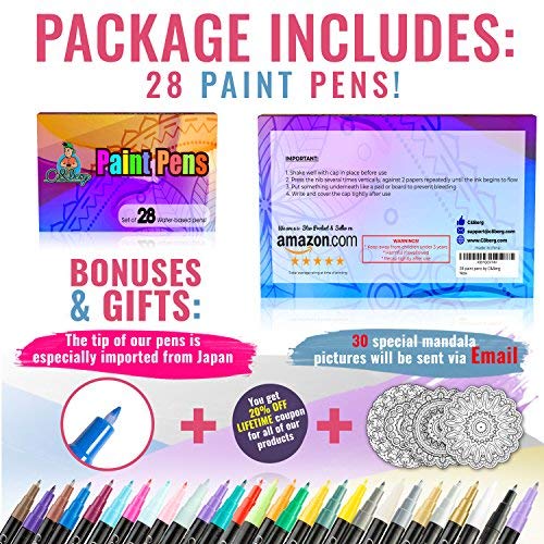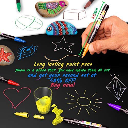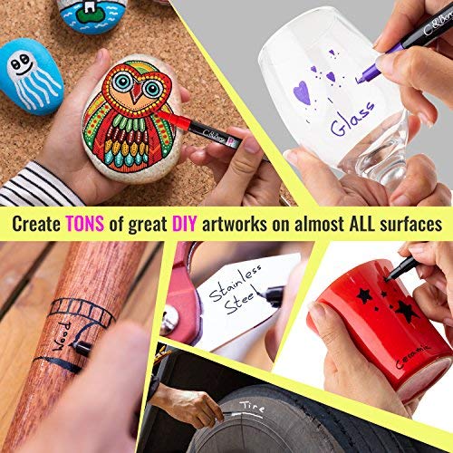 🎨 PAINT ON EVERY SURFACE: Searching for Pens that work on any surface? Bingo, you found them! These odorless Paint Pens are waterproof and look great on rocks, canvas, ceramics, stone, glass, metal, pottery, wood, plastic, terra-cotta, polymer clay, and more!