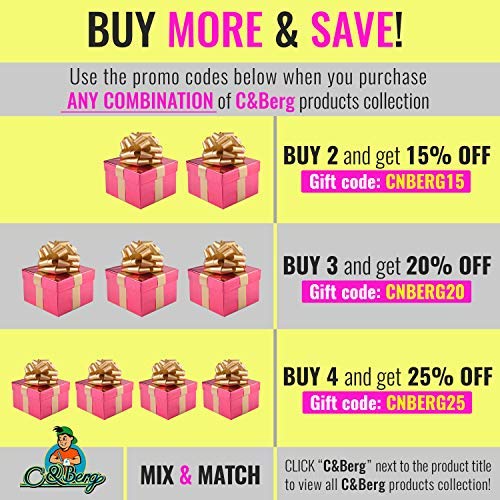 💯 EXCLUSIVE WARRANTY: we ensure 100% satisfaction ➤ 30 days MONEY BACK GUARANTEE ➤ Special 20% discount coupon on every next purchases with all of C&Berg products. ➤ C&Berg Is an Amazon registered brand and Trade-marked, we are the only authorized seller of this brand.