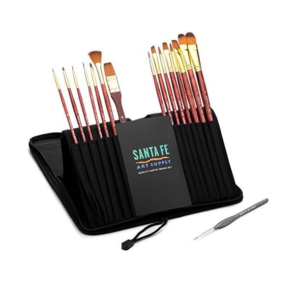 Tired of Loose Hairs or Obvious Brush Strokes? Look no further. This top quality paint brush set with gold standard design, manufacture and testing, gives painters of all skill levels the proper tools to express themselves. All of the necessary brush tips are included for precise, masterful strokes: fan, flat, filbert, round, tapered, wide, and more. Exclusive to this set is a short brush for fine detail with an ergonomic maintain. The Santa Fe Art Supply quality artist brush set includes brushes with numerous tip designs to shape your creations and let your creativity glide. The golden synthetic brushes are easy to clean, resistant to wear and are versatile enough that can assist you craft equally well in acrylic, watercolor, gouache, oil, and face paints. The handy portable carrying pouch protects all of your brushes between uses and pops up into a display tray to keep your brushes accessible to you even as you create. The carrying case makes this an excellent commute set for field artists who need to paint even as away. The fifteen 12″ brushes are well-balanced and crafted for quality, constructed with real wood handles and high grade synthetic hairs. Our triple setting process sets a gold standard for superior manufacture, smooth paint glide, and exceptional brush saturation. The Santa Fe Art Supply Art Set is 100% satisfaction guaranteed and includes a lifetime no-hassle free replacement warranty! Start creating your masterpieces today! CLICK the ADD TO CART button at the top of this page and BUY NOW!