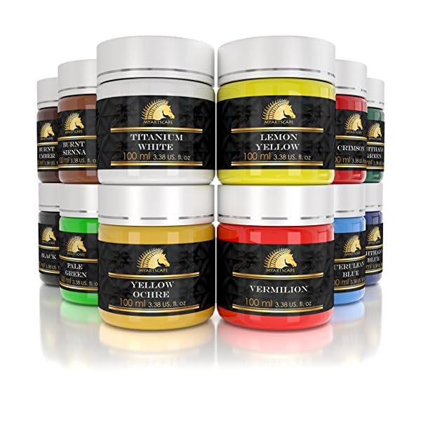 ACRYLIC ART PAINT SET – 12 x 100ml bottles of non-toxic professional artist quality paints – MyArtscape