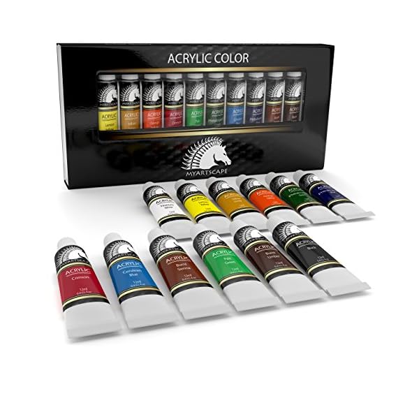 ACRYLIC ART PAINT SET – 12 x 12ml tubes of non-toxic professional artist quality paints – MyArtscape