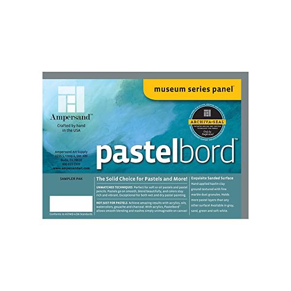 Ampersand Pastelbord is fabricated from a gesso and clay coated hardboard panel with a granular marble dust finish. The result’s a textured board comparable to sanded pastel paper, but a lot more durable and versatile. Since it has a hardboard backing, Pastelbord Can be utilized with wet or dry pastel techniques, in addition to acrylics. The museum quality surface is non-yellowing and ph neutral. To be had in a couple of colors and sizes. This assorted pack comes with four 1/8″ thick, 5″ x 7″ panels, certainly one of each and every color- white, sand, gray, and green.