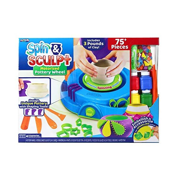 The ArtSkills Pottery Wheel has the entire gear had to create stunning items of pottery. Included within the set are 3 pounds of clay, gear, motorized pottery wheel, a stencil sheet, 4 paint bottles, 1 bottle of glaze, 3 shaping gear, 4 clay gear, 6 cutters, Actual mosaic tiles and a paint brush. Plus, free Youtube video links for “how one can” perform the wheel.