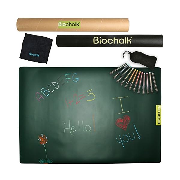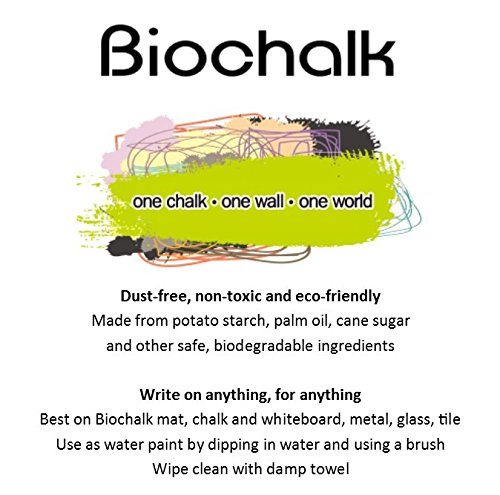 WRITE ON ANYTHING, FOR ANYTHING – Will write on pretty much anything! Biochalk works best on the Doodle Mat, a chalkboard, whiteboard, metal, glass or tile. Simply wipe with a damp cloth after each use for easy clean up. Biochalk won’t leave you with the mess of liquid chalk or dry erase markers.**As with any coloring product, test in a small area before use. Not designed for use on driveways or sidewalks.