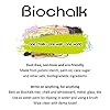 Draw, write or doodle on almost anything, anywhere. You are going to be impressed with how smooth the writing is. Works best on non-porous surfaces like tile, glass windows and mirrors. When used on a chalkboard or whiteboard, Biochalk won’t smear or rub off by chance like traditional chalk or dry erase markers. Cleans easily with a damp cloth. Use on paper for more permanent creations or try the use of with a wet brush for a water color effect.