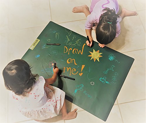FLEXIBLE, HEAVY-DUTY CHALKBOARD MAT – The durable mat is made of recycled plastic and can be laid out on any floor or table. The non-slip backing keeps the mat from slipping. Easy to clean, the mat will last you for years. When done, simply roll up and store in the included bag. Portable enough to take with you to the park, next dinner party or anywhere you wish to have to keep the kids busy.