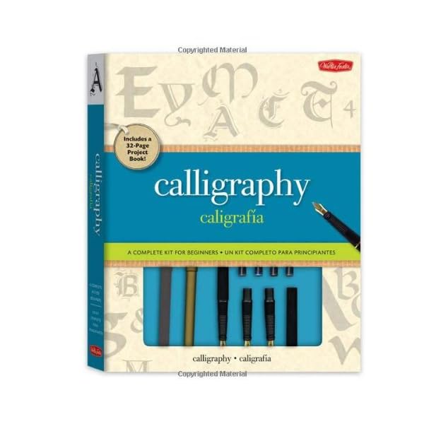 This complete kit makes it easy to start out exploring the exciting art type of calligraphy because it comes with the whole thing a beginning artist needs—from a set of fine quality materials to comprehensive instructions. The lettering book covers the basics—such as pen styles, angles, and hand positions; letter heights and spacing; and practice strokes—before offering advanced techniques for rendering a few calligraphic alphabets. And each lesson can also be accomplished with the array of writing materials provided. The hardcover case features a 40-page paperback book with corresponding Spanish instruction, a cartridge calligraphy pen, 3 pen nibs, 10 ink cartridges, 3 felt-tip calligraphy markers, calligraphy paper, a guideline sheet, and paper.
