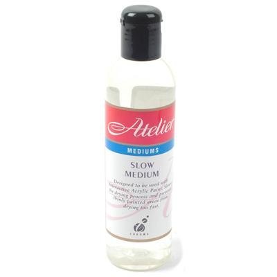 Atelier Interactive Slow Medium is probably the most useful medium for extending drying time. Very useful when painting large works as it gives an artist time to work without the paint drying too fast. It also lets in thinly applied paint to stay workable. Even paint which feels dry to touch may also be reactivated with water for reblending techniques. Especially really useful for any person who has trouble being used to the usage of the water spray. In a 250ml bottle.