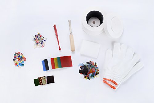 Includes kiln, fusing, bits, glass, earring, bails, kiln paper, glass cutter, hot mitts and instructions(please be told that the instruction booklet is for 15 pieces accessories kit)