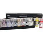 Golden Fluid Acrylics are viscous, with prime tinting strength, flexibility and sturdiness on many surfaces. They’re really useful for mixing, tinting, and shading. Ideal for spraying, brushing, or mixing with all Golden colors. When used with Acrylic Float Liberate the Fluids work as staining or watercolor tactics. Incorporates ten 1 ounce jars of the next colors- Titanium White, Hansa Yellow Med, Yellow Oxide, Pyrrole Red, Quinacridone Magenta, Ultramarine Blue, Phthalo Blue (GS), Phthalo Green (BS), Burnt Sienna, Carbon Black, and a Fluid Application guide.