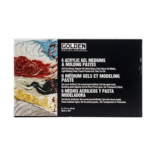 Golden Introductory Acrylic Gel Mediums & Molding Paste Set. New tactics are waiting to be found out. The six mediums on this introductory gel mediums & molding pastes set be offering the chance to experiment with equipment that broaden operating homes and expand probabilities. This package incorporates six 2oz acrylic gel mediums and molding pastes. Conforms to ASTM D 4236. Made in USA.