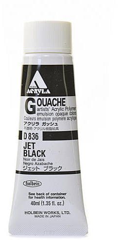That is for 1 pcs. Holbein Acryla GouacheSize: 40 mlColor: jet blackGroup: #11550Acryla Gouache is a perfect medium to be had to the artist, designer, illustrator and student. Acryla Gouache has pigmented colors, including metallic and luminous finishes, in an acryl resin to be able to dry to the same smooth mat finish as does the Holbein Designers- Gouache in gum arabic. Acryla Gouache moves, reacts, blends and feels like traditional gouache but is effectively waterproof once fully dry. It’s rated for light-fastness, adapted to the Munsell color standard for hue, value and chroma and is constituted of the purest pigments to be had. Acryla Gouache can be used as a successful found with the intention to not contaminate over painted layers. It is going to not shift in color tone from liquid to dried color. Hence, what you see wet is what you get dry. Acryla Gouache does not have as fragile a surface as traditional gouache in gum arabic and is compatible will all other water soluble media irrespective of origin. An ideal medium for hobbyists and carvers as well.