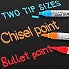 DOUBLE SIDED TIP: Every chalk marker has a durable two-sided nib, one end is a chisel point (great for fine detailed lettering & writing), the other end is bullet tip (great for broad stokes). Simply pull the tip out and flip it!