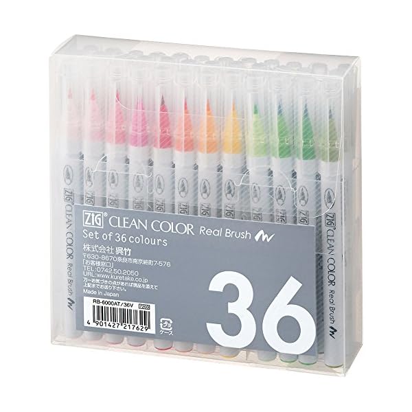 Positive Calligraphy writing pen from Jap desk bound Logo, Kuretake (Zig). Kuretake Fude Brush Pen, Blank Colour Actual Brush, 36 colours set