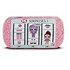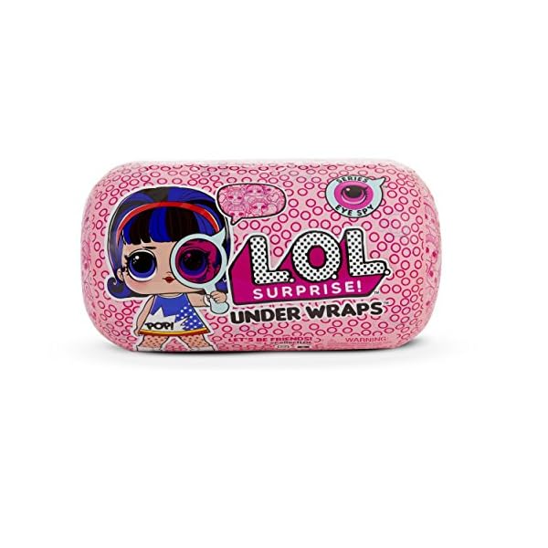 L.O.L. Surprise eye spy under wraps includes 15 surprises! (1) spy glass (2) secret message sticker (3) surprise codes, (4) bottle, (5-11) mystery disguise, (12) shoes, (13) fashion accessory, (14) outfit, and (15) lol surprise eye spy under wraps doll.