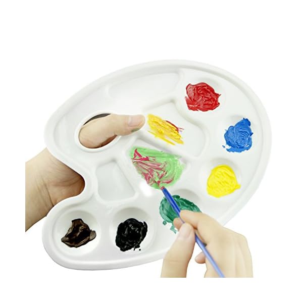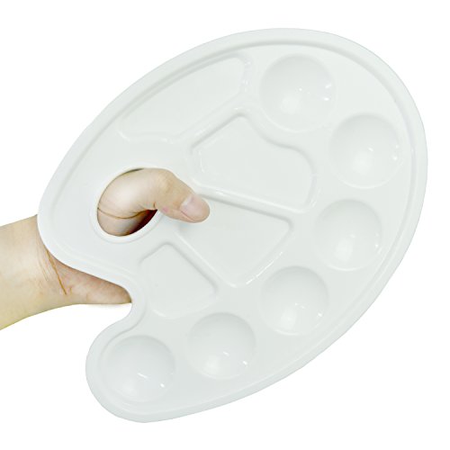 Kare & Kind® offersHigh Quality Paint Palette Tray with Ten Wells and One Thumb Hole. The ten-well Palette is great for organizing colors, handling out paint and learning color theory. From student to serious artist, this white plastic well palette with thunb hole is the easiest painting accessory. Comfortable to make use of and really easy to wash.