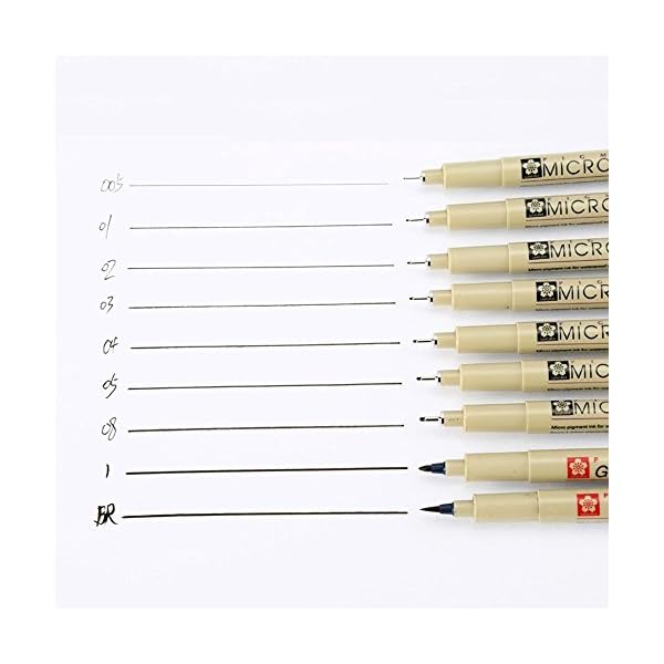 Color: Black. Package: 9pcs of Sakura fine line pen (considered one of every size) , number:005,01,02,03,04,05,08,1,Brush