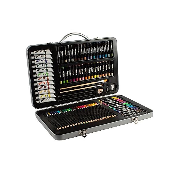 Mixed media set : Includes 12 felt tip markers, 36 oil pastels, 24 color pencils, 12 x 12ml acrylic paints, 1 x 2B pencil and 1 x 4B pencil