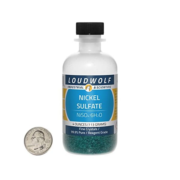 The item for sale is 4 Ounces of Nickel Sulfate Hexahydrate (NiSO4.6H2O), sometimes called Nickel(II) Sulfate or Nickelous Sulfate. Nickel Sulfate is usually used as a source of nickel in chemical synthesis and electroplating solutions. For other electroplating accessories, including Nickel Chloride, Copper Sulfate, Sodium Borate, and Thiourea, take a look at our other listings. CAUTION: Nickel Sulfate is a imaginable allergen and may irritate skin. STURDY PLASTIC BOTTLE: Our bottles are made of durable Polypropylene Plastic, which is a natural, translucent, lightweight, durable, and chemically resistant copolymer. The screw-top is completely leakproof. The bottles’ round shape makes them a really perfect addition to any shelf or commute kit. Each and every bottle we ship is sealed in plastic with the screw-top shrink-wrapped. HUNDREDS OF USES INCLUDING: Electroplating Solutions / Biochemistry / Chemical Catalyst / Production of Mohr’s Salt. SHIPS FAST FROM CALIFORNIA, USA: We ship three times a day, seven days a week. This item can be in the mail the same day you place your order. On its own, this item will ship in a padded bubble-mailer (2-5 day transit time). Combined orders exceeding 13 ounces can be upgraded to a flat-rate box (1-3 day transit time) at no additional charge. Please make sure your stated shipping address is correct, complete, and unambiguous. Applicable products are packaged and shipped based on carrier regulations for ORM-D classification.