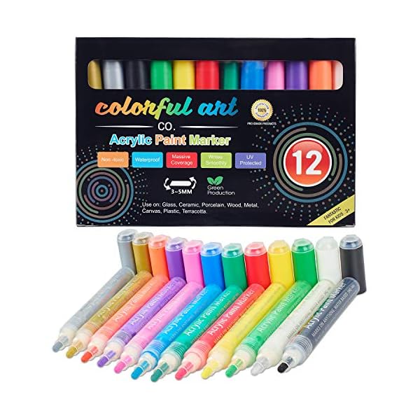 ▶ FANTASTIC, HIGH QUALITY PAINT PEN – Make your creations STAND OUT, by the use of this premium acrylic paint pen set. The opaque, water-based ink dries quickly and produces a long lasting, glossy finish on almost any surface! Colorful Art Co Acrylic pen pack are perfect as a rock painting kit, mug paint markers, wood markers, or acrylic glass paint pens.