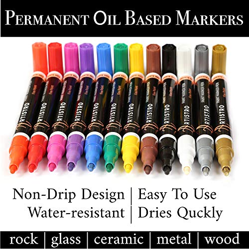 ARTISTRO Paint Pens for Rock Painting, Stone, Ceramic, Glass, Wood, Plastic, Mugs, Metal, Fabric, Canvas. Set of 15…