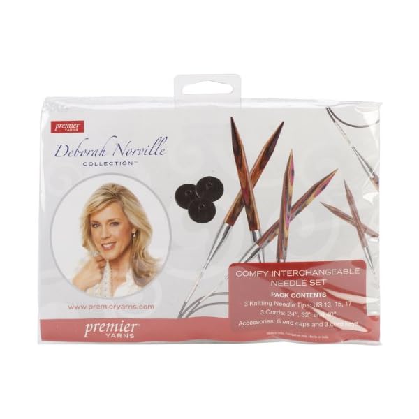 Premier YARNS-Deborah Norville: interchangeable set. Deborah Norville needles have you ever covered with a whole range of knitting needle and crochet hook styles and sizes. Beautifully dyed wood surface warms up quickly to your hands. The polished wood surface and smooth tapered points float effortlessly through any form of yarn. Stitches slide with ease over the graceful sign up for and along the coil-less cable making your next circular project a pleasure. This package accommodates three knitting needle tips (us 13, 15 and 17), three cords (24, 32 and 40 inches), six end caps and 3 cord keys. Imported.