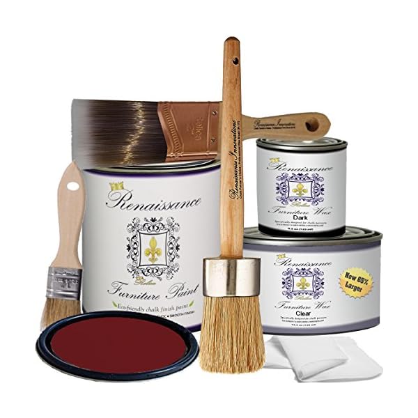 The Deluxe Starter Kit includes everything you wish to have for your project! You’ll receive a quart of the Renaissance Furniture Paint color of your choice, one top of the range 2” Paint Brush, one 8oz Clear Wax, one 4oz Dark Wax, one 1.5” Wax Brush, a 1″ chip brush, gloves, a wax cloth and detailed instructions on application and tips.