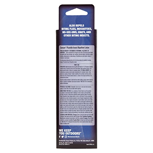 Sawyer Picaridin topical lotion is effective for up to 14 hours against mosquitoes and ticks, and up to 8 hours of protection against biting flies, gnats, chiggers, and sand flies.