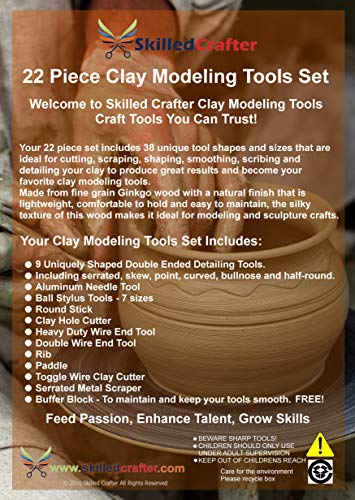 Great Variety and High Quality from Skilled Crafter. Perfect for clay modeling projects from table top to potters wheel – For Beginners & Experts. Your set includes unique tool shapes and sizes that are perfect for cutting, scraping, shaping, smoothing, scribing and detailing your clay to produce great results and grow to be your favorite clay modeling tools. Made from fine grain Ginkgo wood with a natural finish that is lightweight, comfortable to hold and easy to deal with, the silky texture of this wood makes it ideal for modeling and sculpture crafts. You Can Believe Skilled Crafter – Customer satisfaction is our top priority. When you have any issues or questions please contact us and we can do our very best to help. We care about the environment. You are going to receive your Clay Tools in recyclable packaging which is designed to be convenient so that you can open. So click ADD TO CART and start enjoying your Clay Tools Set.