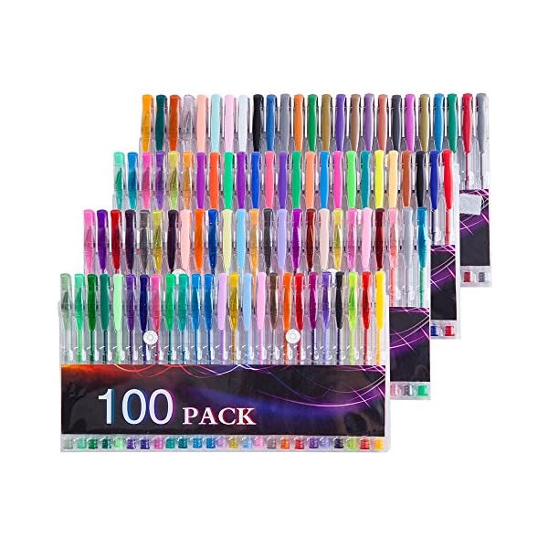 Colored Gel Pens: 100 Unique Colors Ink Pens in a Variety of Styles including Red, Blue, Yellow, Orange, Green, Purple, White, Black, Gold, Silver, Chrome, and many more!