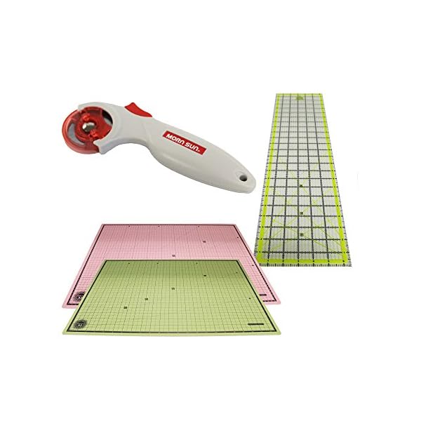 Think Crucial Durable 24×18 Self Healing Reversible Cutting Mat, 6×24 Inch Acrylic Cutting Ruler & 45mm Contour Rotary…