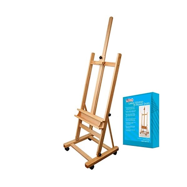 – Sturdy H-frame easel with an adjustable angle and a bracket to regulate height