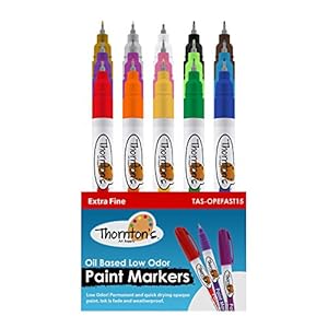 Thornton’s Art Supply 15 Vibrant Premium Oil-Based Paint Craft Marker Pens for Rock Painting, Glass, Metal, Stone, and…