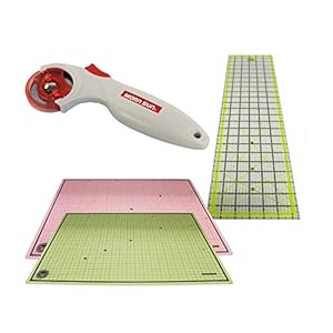 Think Crucial Durable 24×18 Self Healing Reversible Cutting Mat, 6×24 Inch Acrylic Cutting Ruler & 45mm Contour Rotary…