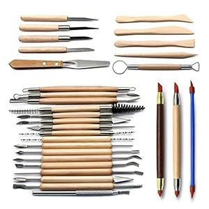 Blisstime Set of 30 Clay Sculpting Tools Wooden Handle Pottery Carving Tool Kit