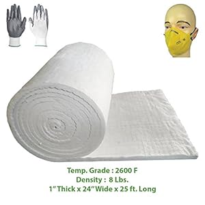 Ceramic Fiber Blanket (2600F, 8# Density) (1″ x 24″ x 25′) Ovens, Kilns, Furnaces, Glass Work and Chimney Insulation