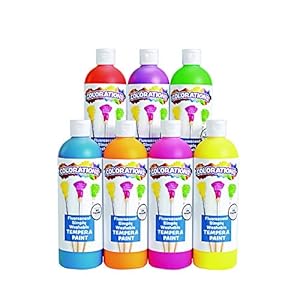 Colorations Washable Tempera Paint, Set of 7, 16 fl oz, Set of 7, Neon, Neon, Non Toxic, Vibrant, Bold, Bright, Kids…