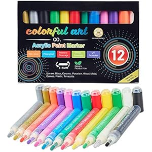 Colorful Art Co. Acrylic Paint Pens – Permanent, Waterproof Pen 12 Pack w/Reversible 3-5mm Brush Tips – Painting Markers…