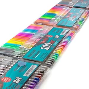 100 Gel Pen Coloring Set – Neon, Fluorescent, Glitter, Metallic, Pastel Gel Pens for Kids and Adult – No Duplicates Non…