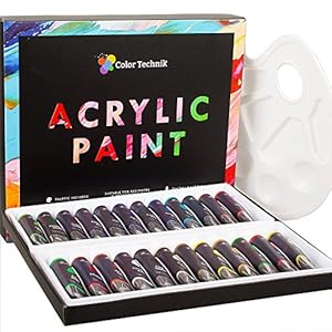 Acrylic Paint Set By Color Technik, Professional Artist Quality, Palette Included, 24 Aluminium Tubes, Best Colors For…